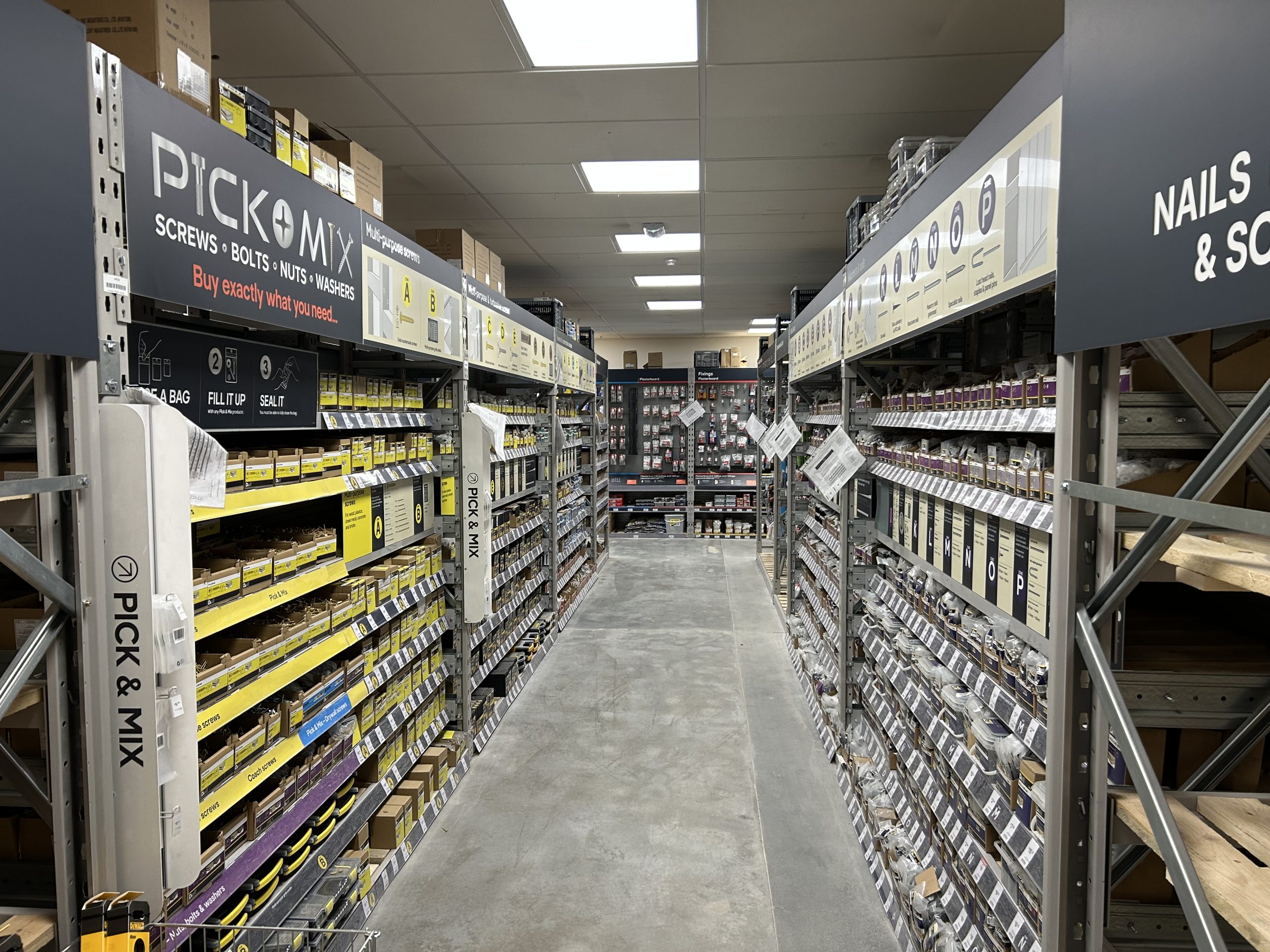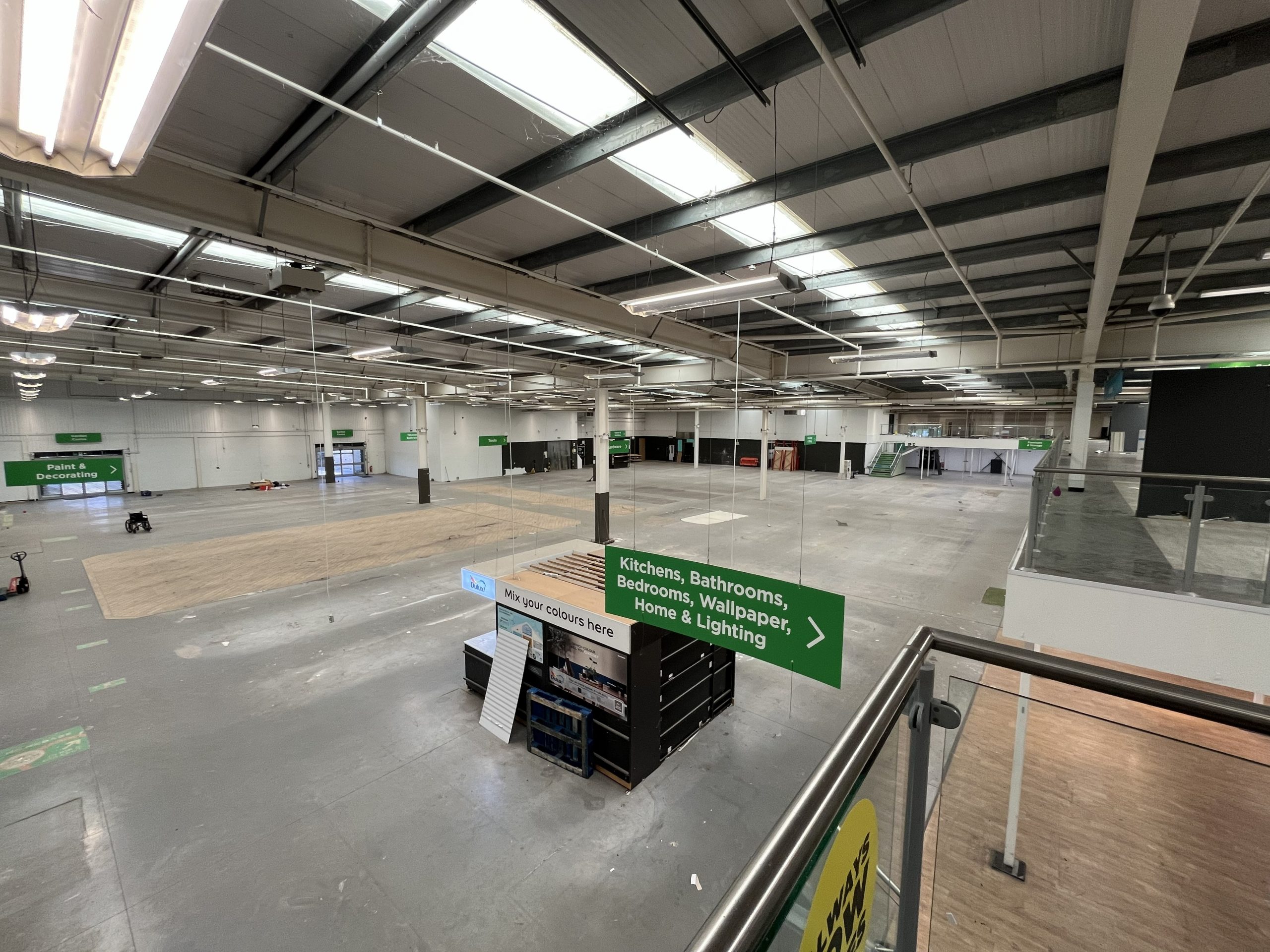 The store was empty at handover, allowing RMS to manage the complete transformation and store build, including heavy duty racking installation, department fitout and garden centre installation.